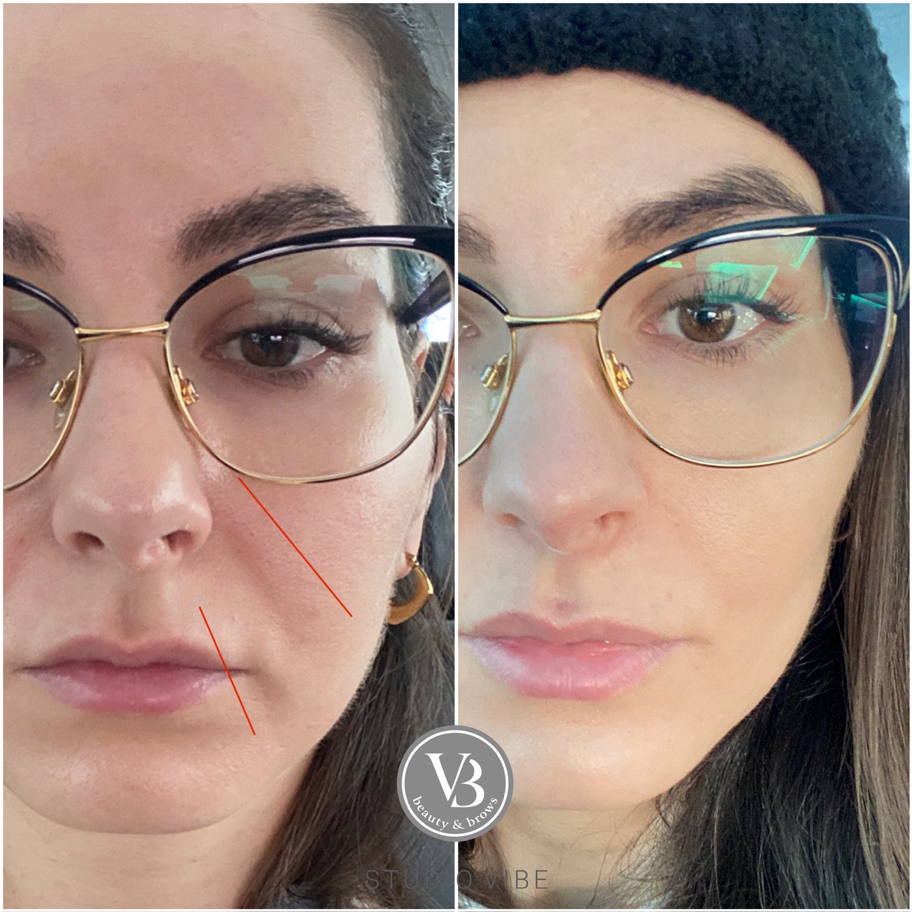 Najviac viditeľný rozdiel pri nosovoústnej vráske. Póriky tiež zjemnené.